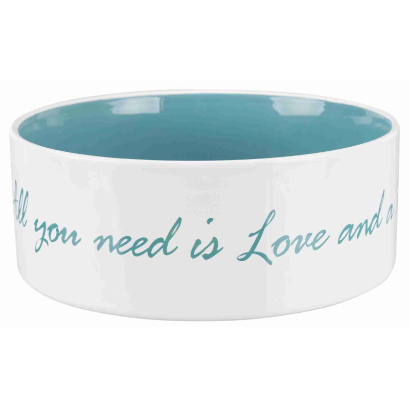 Cette gamelle se caractérise par un joli design et des couleurs harmonieuses. L'inscription "Time spent with pets is never wasted" qui signifie "le temps passé avec les animaux n'est jamais perdu", figure sur l'extérieur de la gamelle.