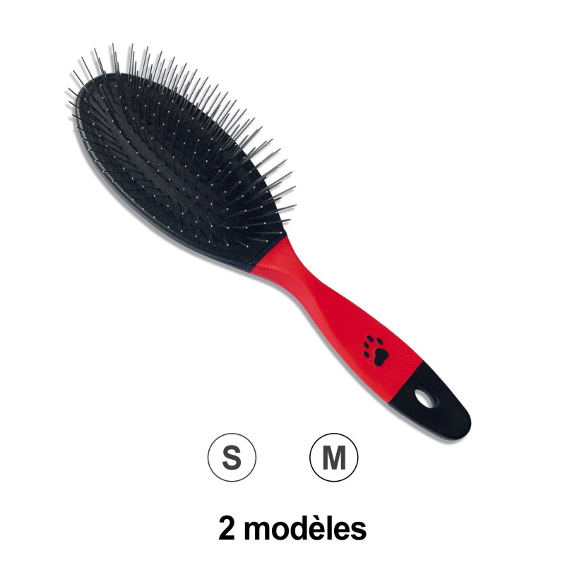 Brosse pour chien à poil long. La brosse ovale avec support caoutchouc souple est parfaite pour les fourrures abondantes avec poignée ergonomique et antidérapante.