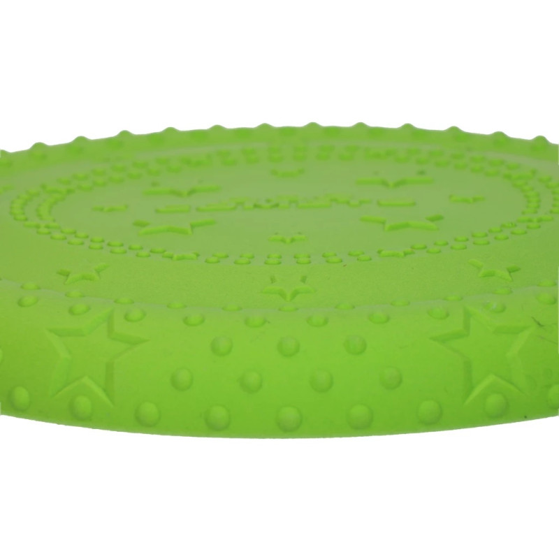 Parfait pour être lancé au loin et pour s'amuser à aller chercher sans fin. Grâce à son matériau spécial, le frisbee résiste aux morsures et aux mâchonnements.